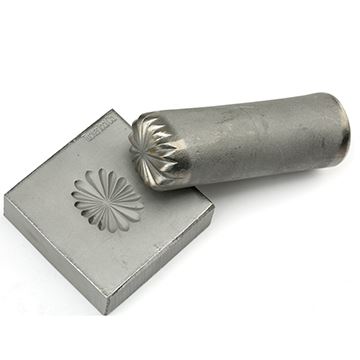 Generally consists of one male puch and one female punch. The die block has one depression, of which vary in depth, that fits the male punch. Recommended 20ga or thinner.
