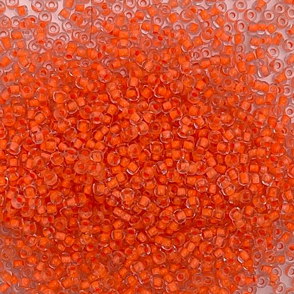 Size 10 Czech Seed Beads, Colorlined Crystal Neon Orange, Approximately 25 Grams