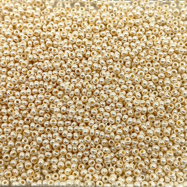 Size 10 Czech Seed Beads, Pearl Eggshell, Approximately 25 grams
