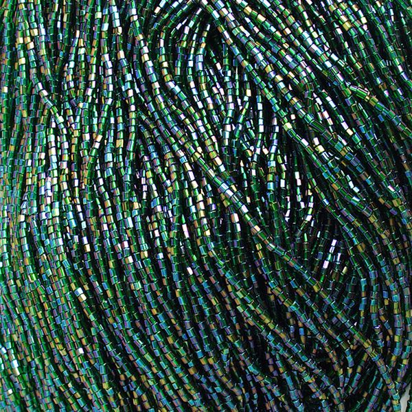 2-Cut Size 10/0, Preciosa Czech Seed Bead, Transparent Green Aurora Borealis, Sold by the Hank