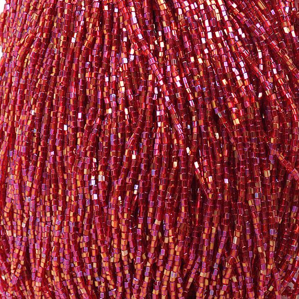 2-Cut Size 10/0, Preciosa Czech Seed Bead, Transparent Red Aurora Borealis, Sold by the Hank