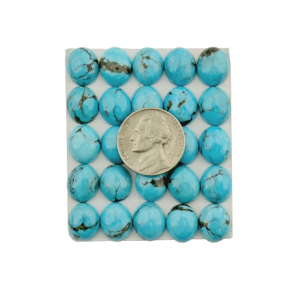 Smooth oval cabochon weighing approximately 2.50 carats each. Natural products may vary in grade and color from blues to greens.