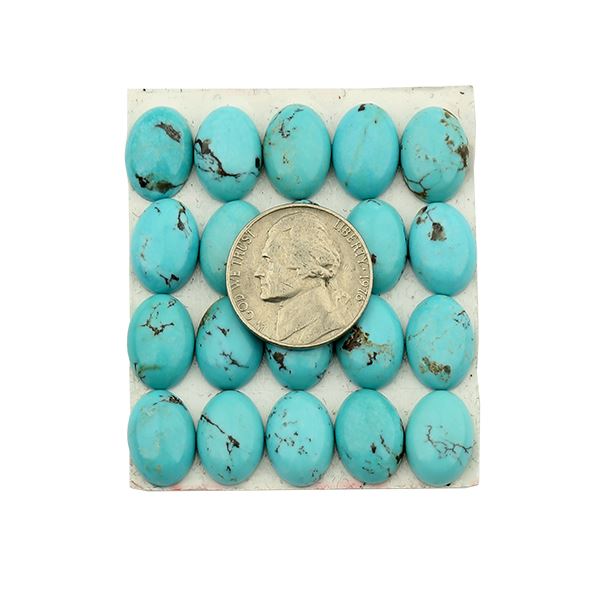 Smooth oval cabochon weighing approximately 3.15 carats each. Natural products may vary in grade and color from blues to greens.