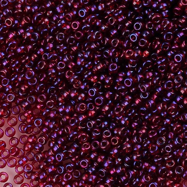 Size 11 Japanese Seed Beads, Aurora Borealis Lined Raspberry (#299J), Approximately 25 Grams