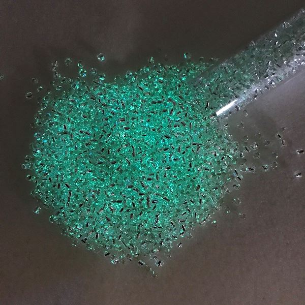 Size 11 Japanese Seed Beads, Baby Blue/Bright Green Glow in the Dark (#2723), Approximately 25 Grams