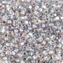 Size 11 Seed Beads, Silver-lined Ice Blue Aurora Borealis (#642A), Approximately 25 Grams
