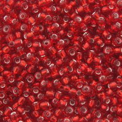 Size 11 Japanese Seed Beads, Silverlined Red (#11), Approximately 25 Grams