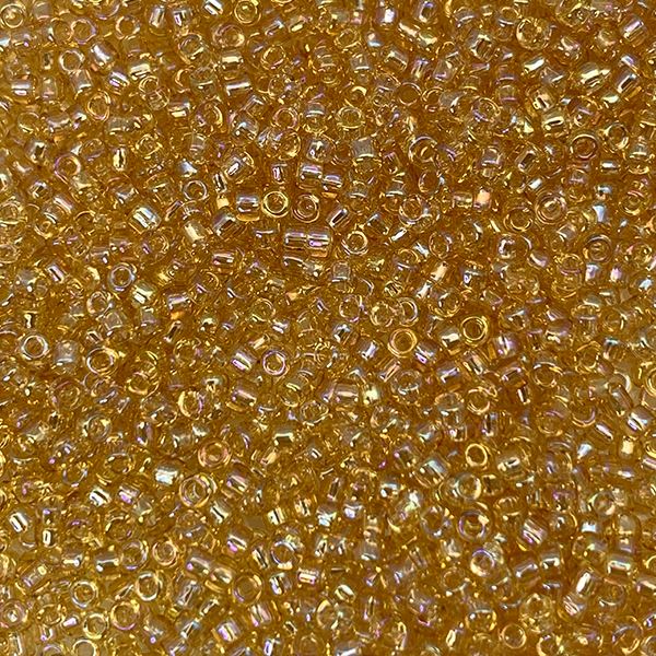 Size 11 Japanese Seed Beads, Transparent Topaz Aurora Borealis (#251A), Approximately 25 Grams