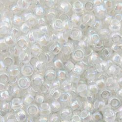 Size 11 Japanese Seed Beads, Colorlined White Aurora Borealis (#284), Approximately 25 Grams