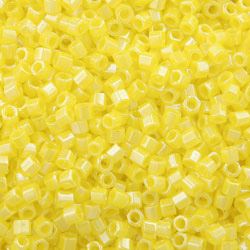 Size 15 Hexagon Seed Bead, Opaque Lustre Yellow #422, Approximately 25 Grams