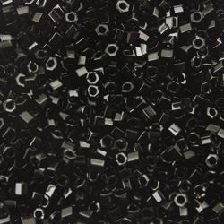 Size 15 Hexagon Seed Bead, Opaque Black #401, Approximately 25 Grams