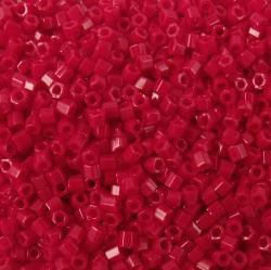 Size 15 Hexagon Seed Bead, Opaque Dark Red #408A, Approximately 25 Grams