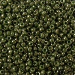Size 15 Seed Bead, Opaque Lustre Olive #431I, Approximately 25 Grams