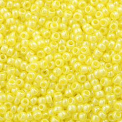 Size 15 Seed Bead, Opaque Lustre Yellow #422, Approximately 25 Grams