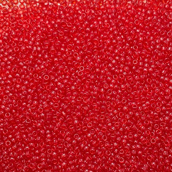 Size 15 Seed Bead, Transparent Red #141, Approximately 25 Grams