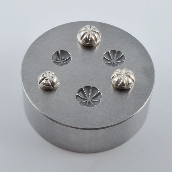 This stamp is made from hardened and tempered tool steel. These are fabricated/handmade, each may have a slight difference.
