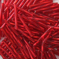 Silverlined Dark Red Twist Bugle Beads 20mm<br />Approximately 50 Grams
