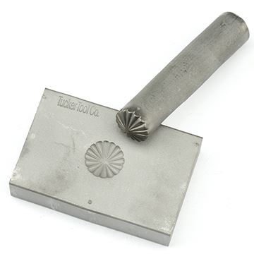 Generally consists of one male puch and one female punch. The die block has one depression, of which vary in depth, that fits the male punch. Recommended 20ga or thinner.