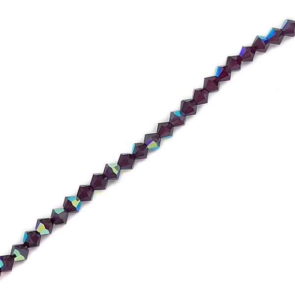 Preciosa Bi-Cone, Siam Aurora Borealis Glass 4mm Beads, 5" Strand