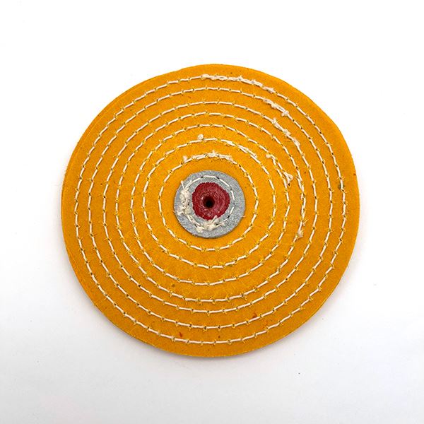This leather centered buff is chemically treated for a long life, ~ with excellent compound retention. Great for getting into those hard to ~ reach places. For use with Tripoli or bobbing compounds.