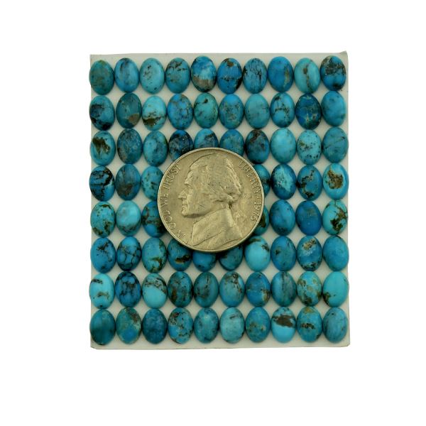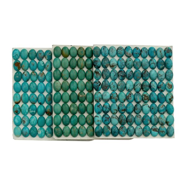 Smooth oval cabochon weighing approximately .70 carats each. Natural products may vary in grade and color from blues to greens.