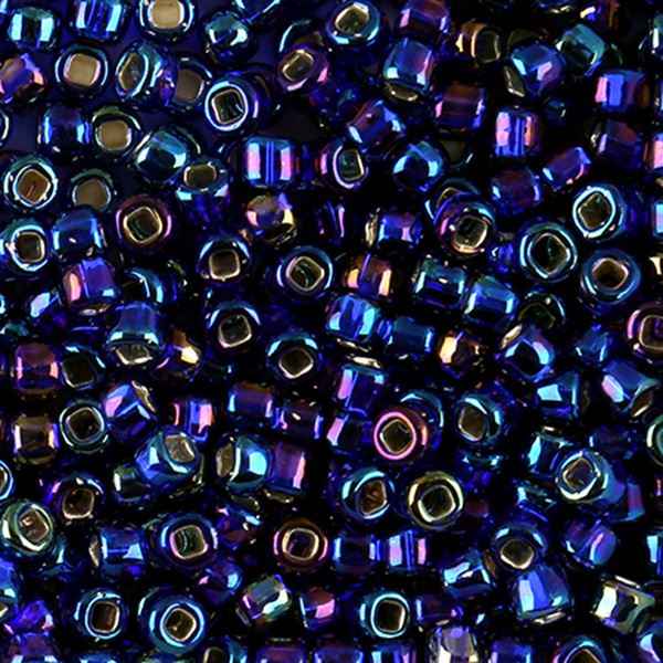 Size 6 Japanese Seed Beads, Silver-Lined Cobalt Aurora Borealis (#641), Approximately 25 Grams