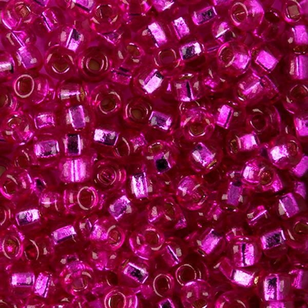 Size 6 Japanese Seed Beads, Silver-Lined Fuchsia (#23), Approximately 25 Grams