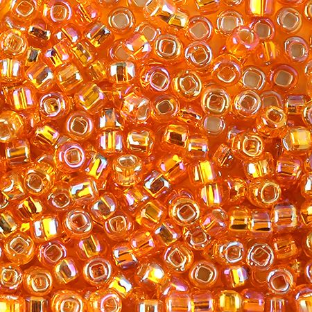 Size 6 Japanese Seed Beads, Silver-Lined Orange Aurora Borealis (#637), Approximately 25 Grams