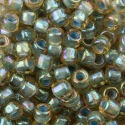 Size 6 Japanese Seed Beads, Topaz Colorlined Sage Aurora Borealis (#356F), Approximately 25 Grams