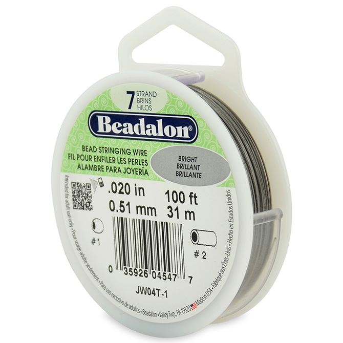 Beadalon 7 Strand is made up of 7 strands of wire incorporated within a protective, abrasion-resistant nylon coating. Good for general beading projects, Beadalon 7 Strand is economically priced and stronger than Tiger Tail. 7 Strand, .020 Inch Diameter, 100 Feet, Crimp Tube #2, Crimp Bead #1.
