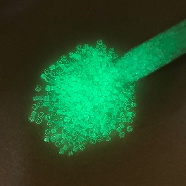 Size 8 Japanese Seed Beads, Baby Blue/Bright Green Glow in the Dark (#2723), Approximately 25 Grams