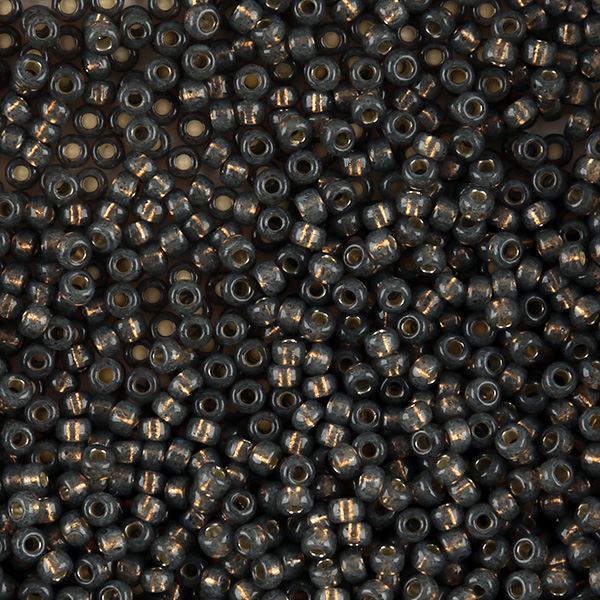 Size 8 Japanese Seed Beads, Gilt-lined Olive Grey (#590), Approximately 25 Grams