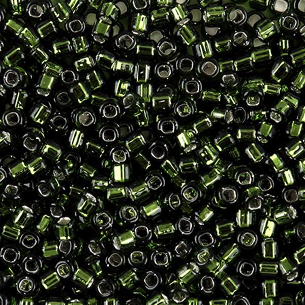 Size 8 Japanese Seed Beads, Silverlined Green (#15), Approximately 25 Grams