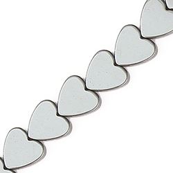 Hematine Flat Heart Bead 8mm, 16" Strand