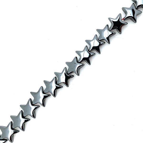 Hematine Puffed Star Bead 8mm, 16" Strand