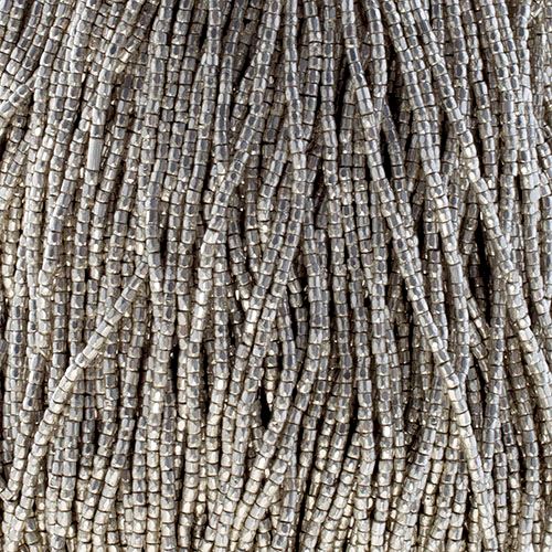 3-Cut Size 9/0, Preciosa Czech Seed Bead, Opaque Silver Terra Metallic Dyed, Sold by the Hank