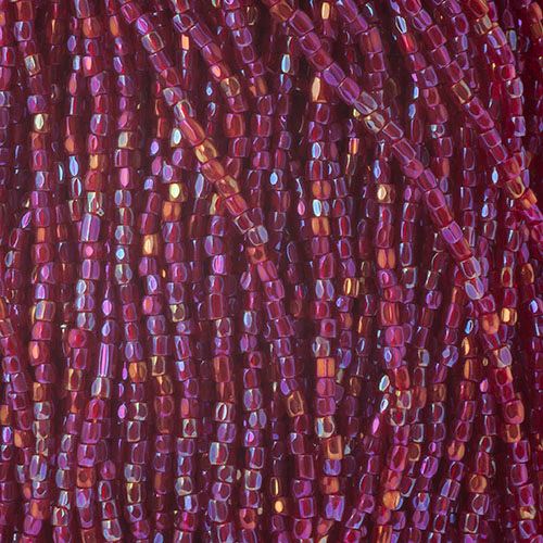 3-Cut Size 9/0, Preciosa Czech Seed Bead, Transparent Red Iris, Sold by the Hank