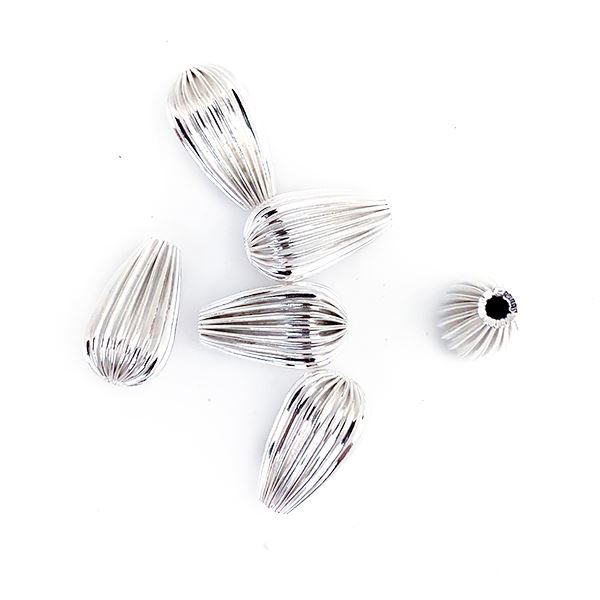 Sterling Silver Corrugated Drop Bead, 8.5x15mm