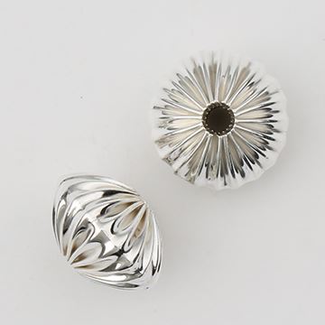 Sterling Silver Corrugated Rondelle Bead, 8.8x12mm