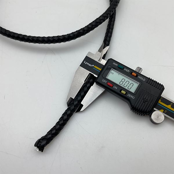 Handmade Black Leather, Cotton Core, Braided Bolo Cord, 8 Ply, Approx. 44" Length, Approx. 7.5-8mm Thick
