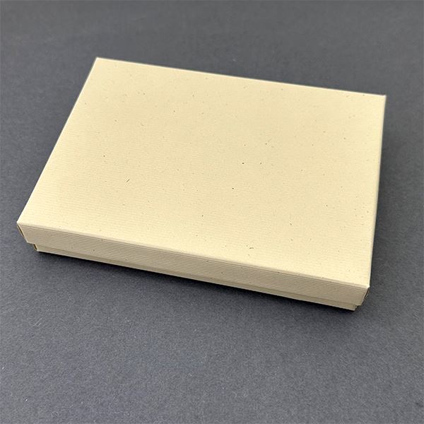 This oatmeal cardboard gift box comes in two parts, a base and lid, and contains a cottony batting to cushion and protect the contents. This box measures 5-1/4 inches wide by 3-3/4 inches long and 7/8 inches tall. These are great gift boxes for any occasion.