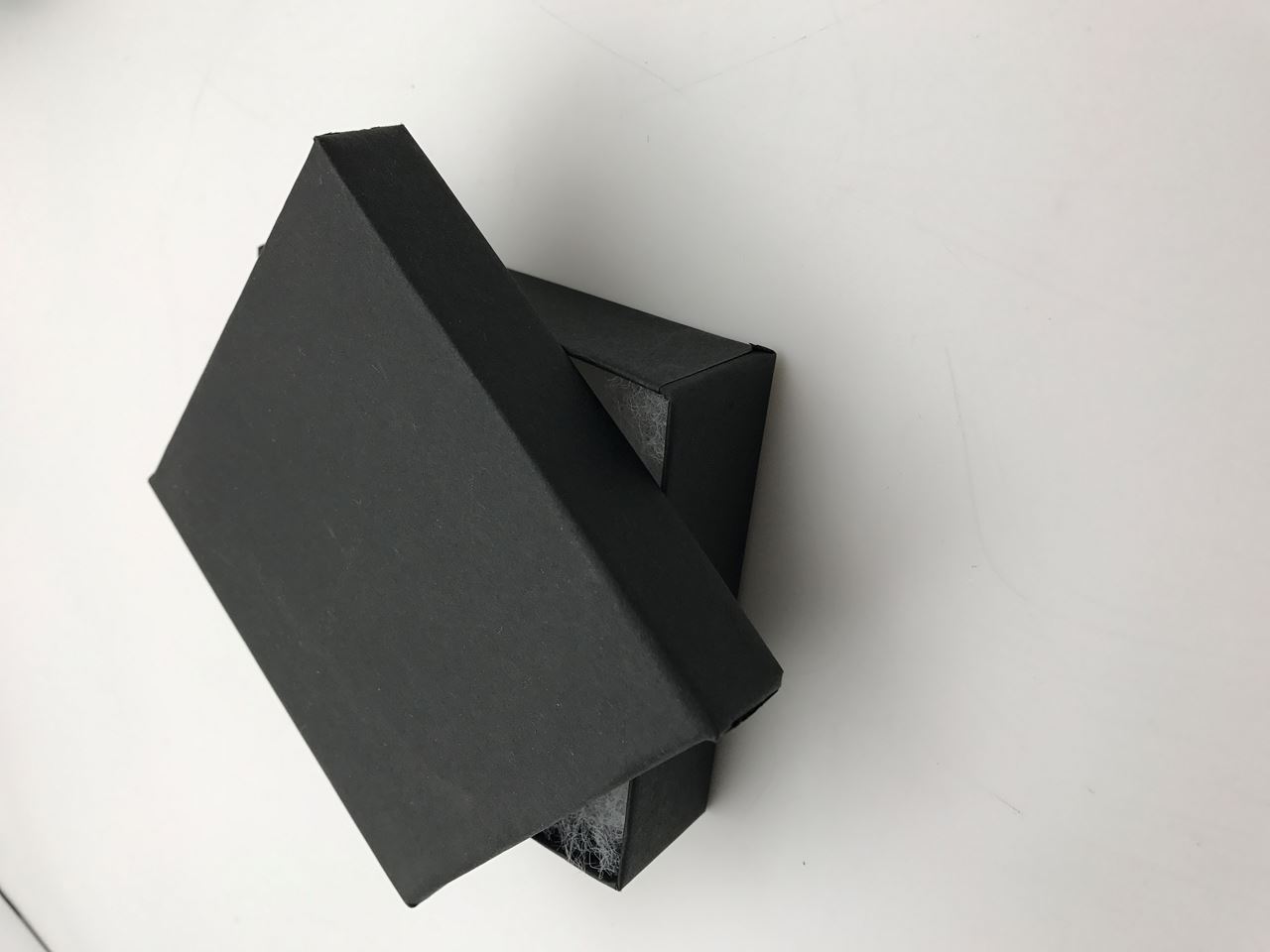 This onyx cardboard gift box comes in two parts, a base and lid, and contains a cottony batting to cushion and protect the contents. This box measures 3 1/2 inches wide by 3 1/2 inches long and 1 inch tall. These are great gift boxes for any occasion.