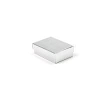 This silver cardboard gift box comes in two parts, a base and lid, and contains a cottony batting to cushion and protect the contents. This box measures 3 1/16 inches wide by 2 3/25 inches long and 1 inch tall. These are great gift boxes for any occasion.