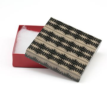 Tan, Black and Red Cotton Filled Gift Box, 3 1/2 x 3 1/2 x 1 Inch