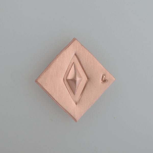 This stamp is made from hardened and tempered tool steel. These are fabricated/handmade, each may have a slight difference.