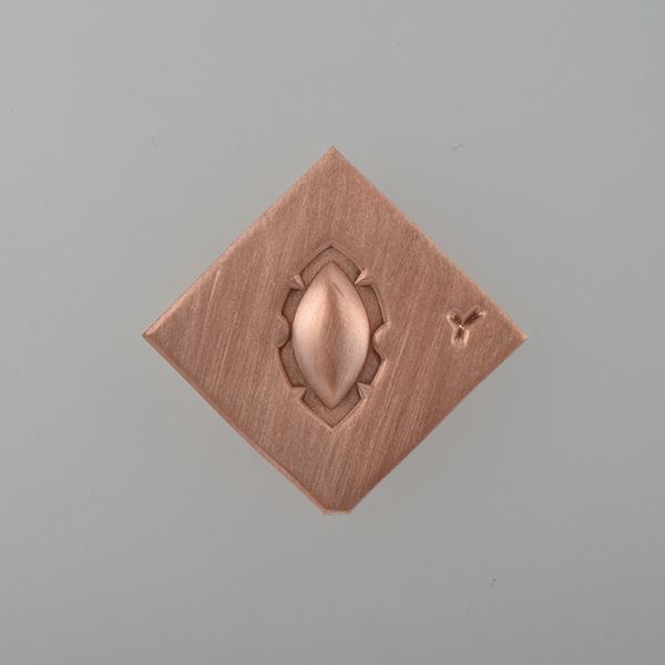 This stamp is made from hardened and tempered tool steel. These are fabricated/handmade, each may have a slight difference.