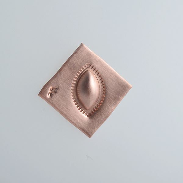 This stamp is made from hardened and tempered tool steel. These are fabricated/handmade, each may have a slight difference.