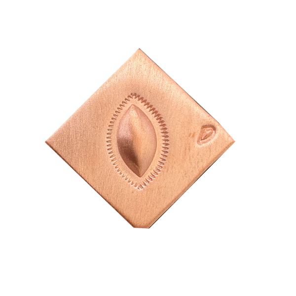 This stamp is made from hardened and tempered tool steel. These are fabricated/handmade, each may have a slight difference.