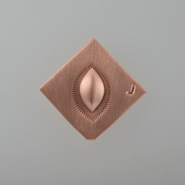 This stamp is made from hardened and tempered tool steel. These are fabricated/handmade, each may have a slight difference.