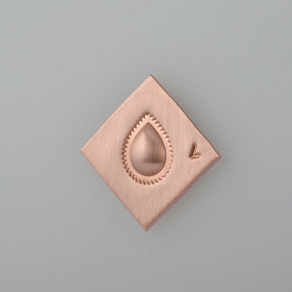This stamp is made from hardened and tempered tool steel. These are fabricated/handmade, each may have a slight difference.